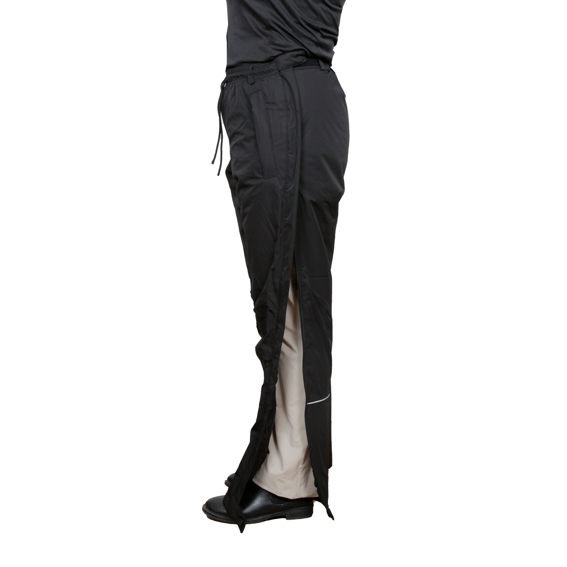 Die langen geteilten Reißverschlüsse an den Seiten erleichtern das An- und Ausziehen der Hose. Bei Bedarf lässt es sich auch einfach entlang des Beins öffnen. Durch den elastischen Bund ist die Hose anpassungsfähig, außerdem gibt es eine Kordel zum Ziehen. 2 praktische Seitentaschen mit Reißverschluss. Das Material ist dünn und flexibel, winddicht und verfügt über eine fluorcarbonfreie Imprägnierung, die es wasser- und schmutzabweisend macht. Die Zahl der Einsatzgebiete ist groß. Sie funktionieren genauso gut, wenn Sie mit dem Hund ausgehen, auf der Rodelbahn stehen oder auf dem Weg zur Arbeit. Sie erleichtern Ihnen als Rollstuhlfahrer das An- und Anziehen. Sie sind auch geeignet, wenn Sie vorübergehende oder dauerhafte Funktionsbehinderungen haben. Z.B. nach einer Operation haben Sie ein eingegipstes Bein, Sie gehen in die Reha, Sie müssen sich wegen eines Unterschenkelgeschwürs oder einer anderen Behandlung der Beine öffnen